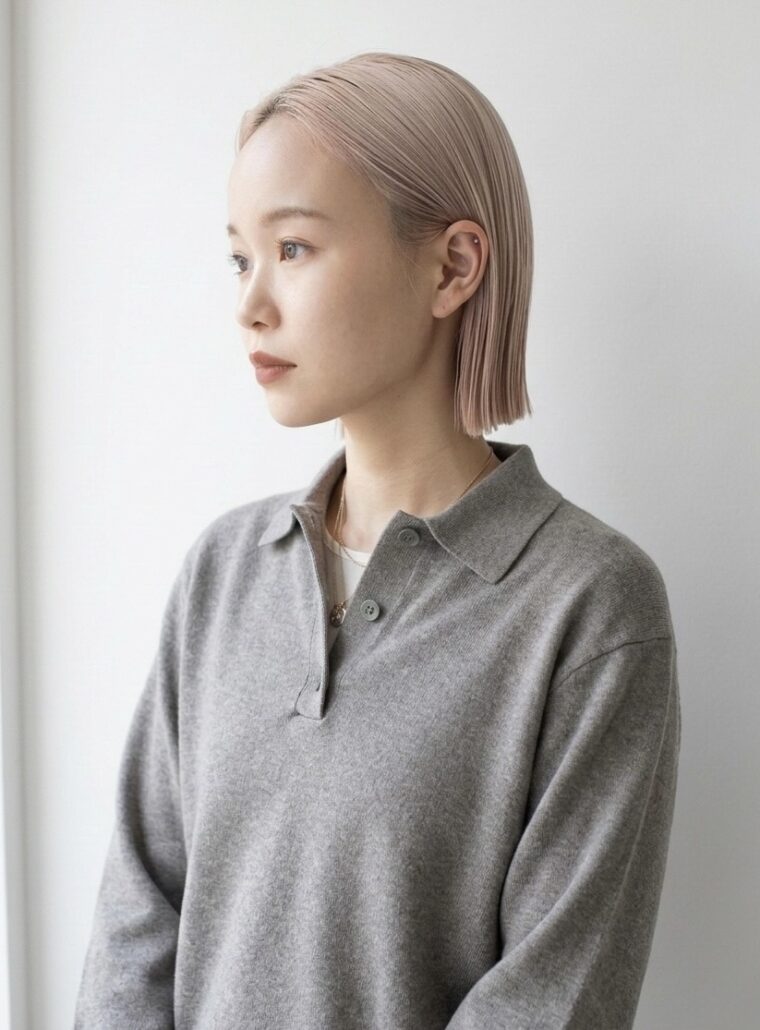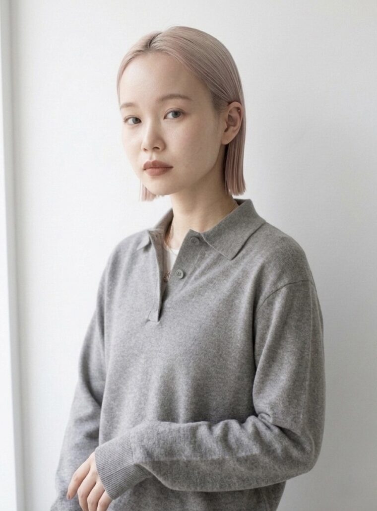 Name グレーポロシャツに馴染む、さらりとしたロングヘア Data Point グレーのポロシャツとさらっとコーデするのにぴったりなロングヘア。首元をすっきり見せつつ、自然なツヤ感で上品な印象をプラスしてくれます。