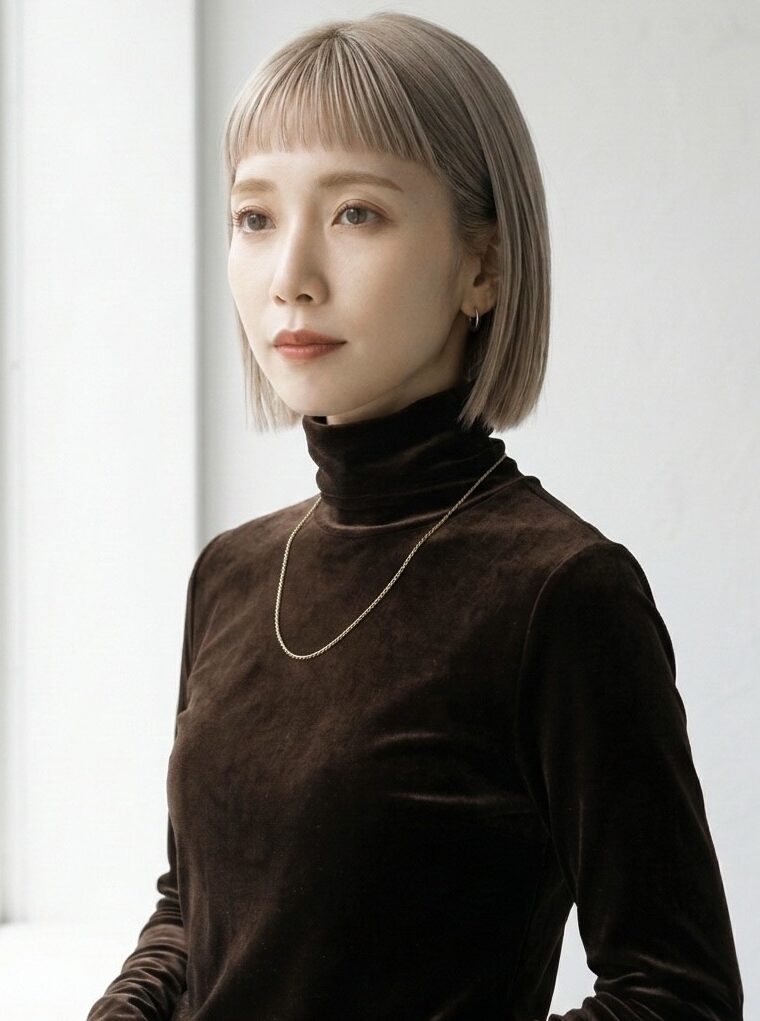 Name ブラウンタートルに合わせた、艶やかなロングヘア Data Point ブラウンのタートルネックと相性のいい、自然なツヤ感のあるロングヘア。トップにふんわりとしたボリュームをつけることで、上品で女性らしい印象を演出してくれます。